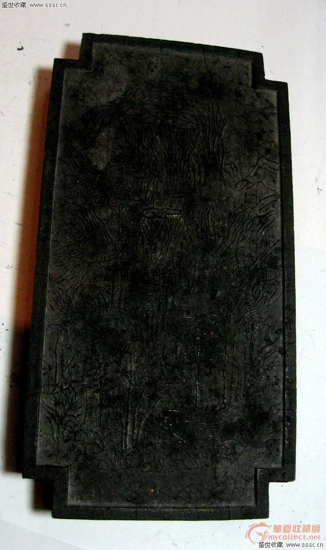 長15.5厘米,寬8厘米,厚1.4厘米,表面風化。山水畫這面有款,另一面詩文有“乾隆”兩字。3000yuan
