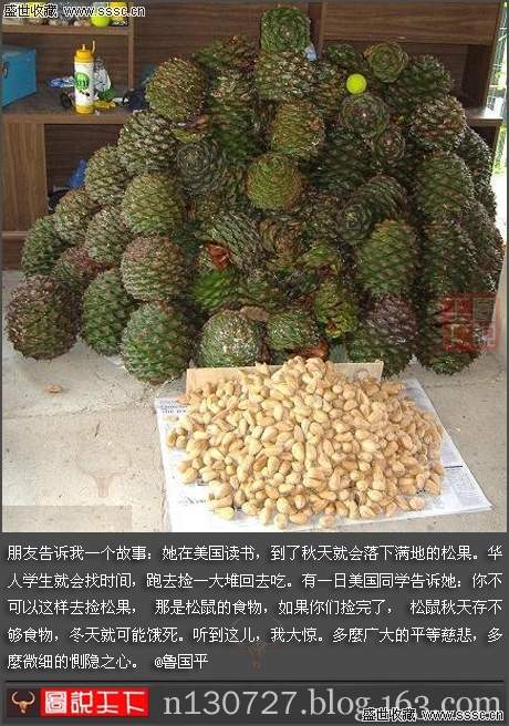 | 等中國(guó)同學(xué)走了以后外國(guó)同學(xué)默默的撿起松子,包裝!然后出口到中國(guó)…… |