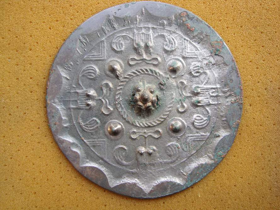 正文摘要:直徑10.3厘米,厚0,25厘米,獸面鈕,繩紋鈕座。四乳釘將鏡面分為四區(qū),每區(qū)置一草葉穿花瓣紋,四乳釘邊緣處置一雙弦紋“v”形規(guī)矩紋,獸面鈕,正背均銀白光,徑2000年能保存如此完美,實(shí)屬不易,該鏡紋飾雖不復(fù)雜卻 ... |