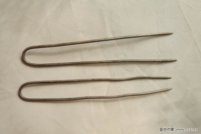 長8.5厘米,折開長十七八厘米的樣子,一對包老包銀,民國時期北方婦女用來綰籫的,價不高,可用能藏。
