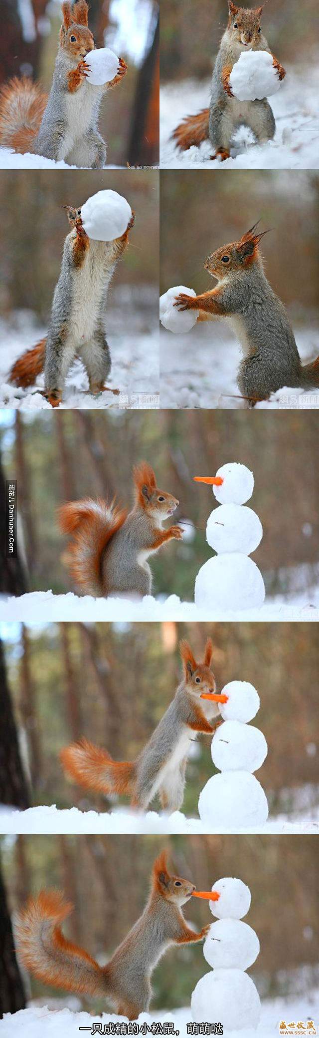 正文摘要:2015年1月13日?qǐng)?bào)道,俄羅斯沃羅涅日州,一只紅松鼠在當(dāng)?shù)厣掷锿嫠r(shí),使用一根微小的胡蘿卜和三個(gè)圓形的雪球堆好了一個(gè)雪人。這只小松鼠花了一個(gè)下午的時(shí)間在雪地上滾雪球,完成自己的作品后滿意的欣賞了起來。 ... |