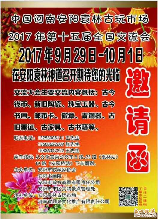 正文摘要:安陽古玩市場秋季全國交流會定于2017年9月29日至10月1日隆重召開!. ?% c) Q5 q* a# x' ?8 u: K# q6 R/ K 歡迎全國收藏愛好者蒞臨交流 !報名時間:2016年9月27至29日。& g5 o* E5 w4 ^- ... |
