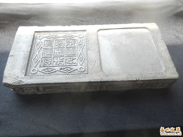 正文摘要:6 ~8 A0 U' s8 m* W! l 370mm×175mm×50mm,重:4905g。漢磚後作大淌硯,平面現(xiàn)代雕刻,側(cè)面紋飾原有。硯池細膩如孩面,質(zhì)地非??@密,堅實如鐵,不易破裂。用之為硯,細膩光潔,肌理瑩滑如玉,不滲水,發(fā)墨好。文 ... |
