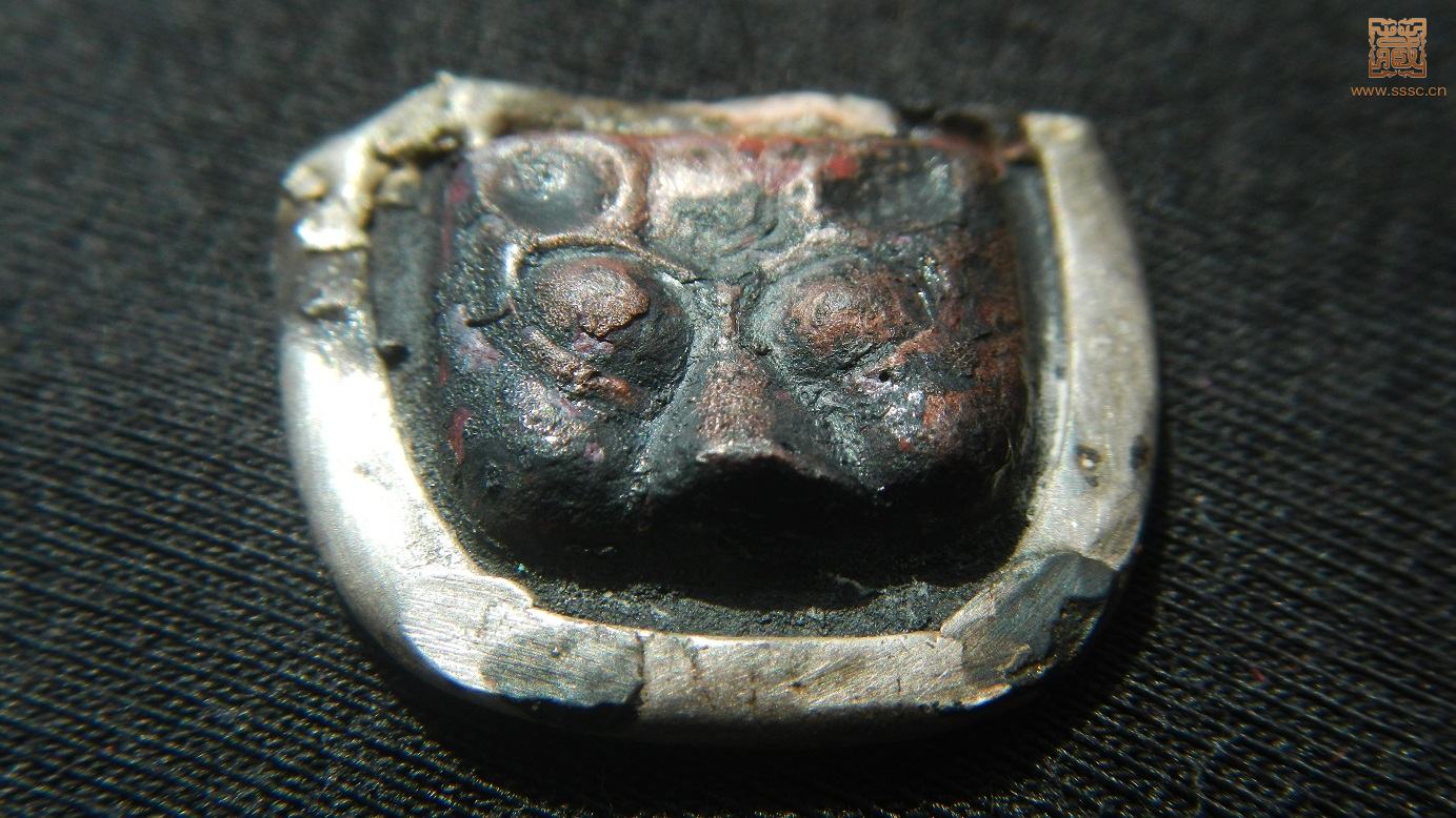 正文摘要:! ^5 E# q' K& @& m! [) ~9 c6 X25mm×22mm×5mm,重:9g。梯形鑲嵌件,中心紅銅神獸,頗似輔首上的饕餮,面目猙獰,四邊及背面鑲銀。銀質(zhì)細(xì)膩,珠光寶氣,包漿溫潤(rùn)。無(wú)裂修補(bǔ),品相如圖。300包老、包遞。- U0 M2 N ... |